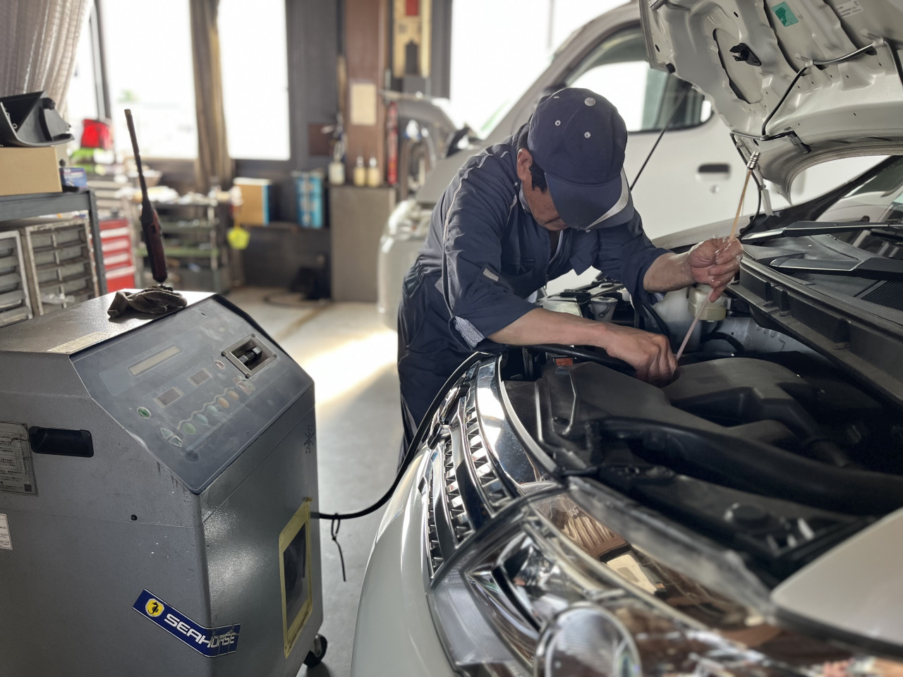 エンジンオイル交換からエンジン修理やエアコン修理、鈑金塗装(キズ・ヘコミ修理)まで、愛車の修理はお任せください。